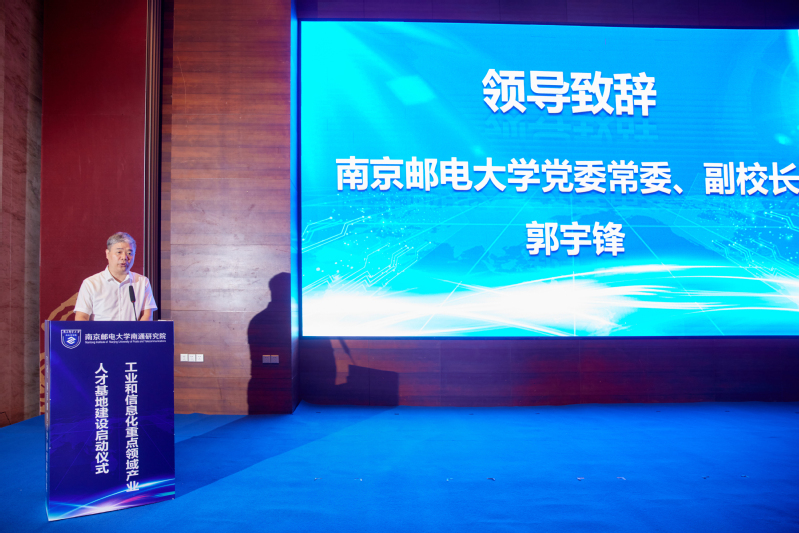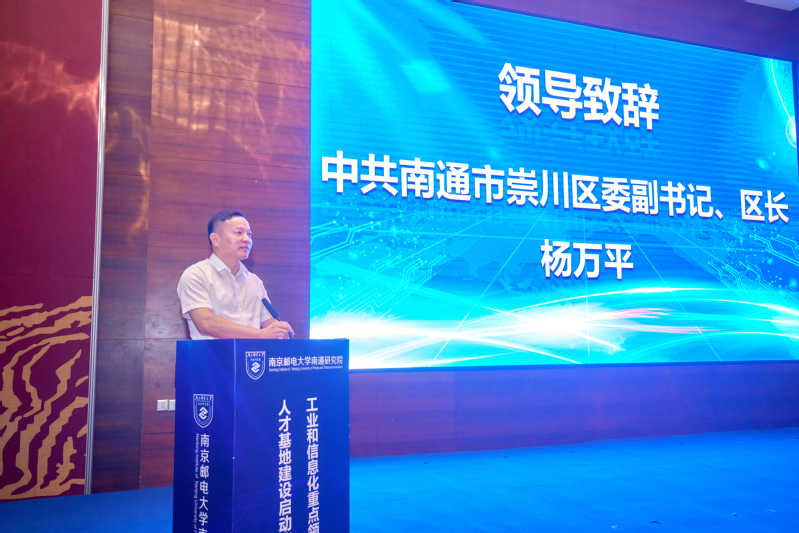 7月21日上午,由南京邮电大学南通研究院主办的工业和信息化重点领域产业人才基地建设启动仪式在南通市崇川区举行。工信部人才交流中心副主任曾卫明,我校党委常委、副校长孙力娟,党委常委、副校长郭宇锋,南通市崇川区委副书记、区长杨万平,工信部人才交流中心教育培训处处长曲来军,江苏省工信厅电子信息处副处长于勇,江苏省人社厅人才开发和对外合作处副处长周军,江苏省产教融合服务平台副主任孙延建,以及地方政府相关领导、企事业单位代表等50余人参加活动。