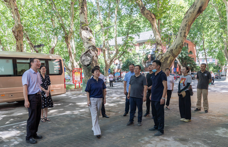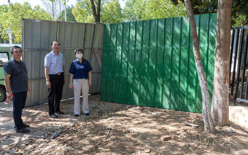 8月22日上午,校长叶美兰,校党委常委、副校长荆晅带队前往仙林校区和三牌楼校区,深入视察校史馆、通信展览馆、邮政馆、教学楼、食堂、学生宿舍、校园书店等校园改造施工现场,看望慰问校内各工地工作人员。