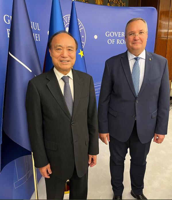 9月8日,赵厚麟在罗马尼亚首都布加勒斯特总理府会见罗马尼亚总理丘克