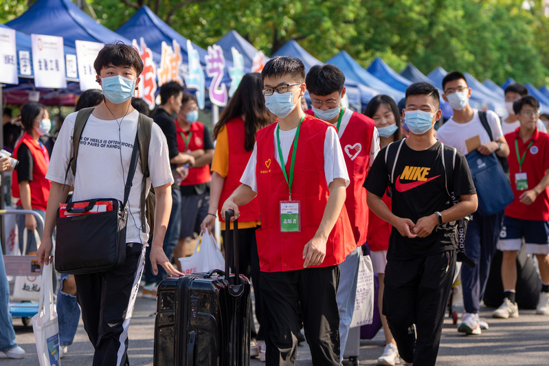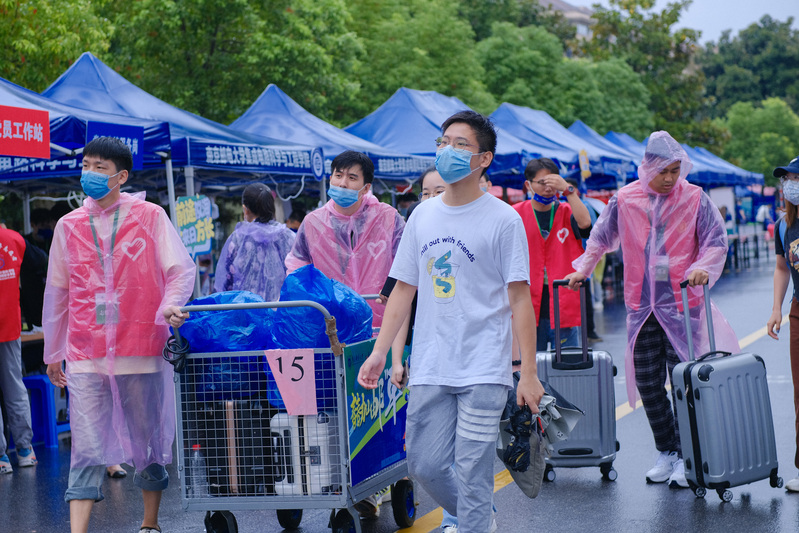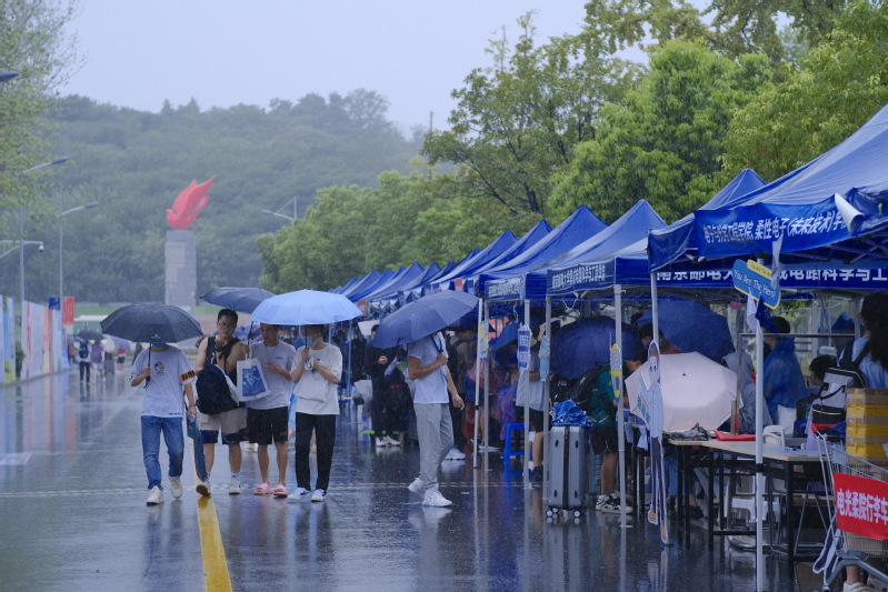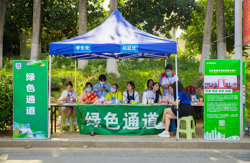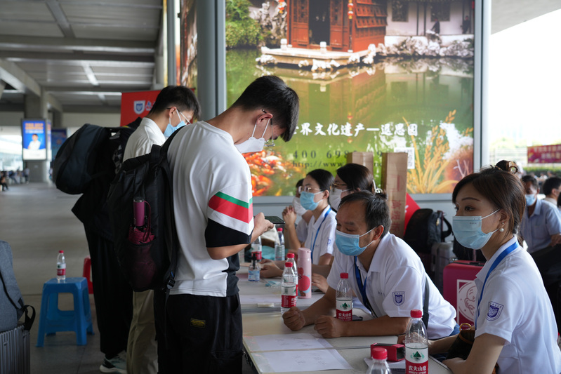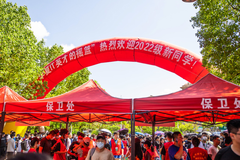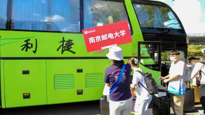 出站就是南邮,为迎接2022级新生的到来,学校在南京站、南京南站设立迎新服务点,安排大巴接站,教师志愿者们为外地来宁新生提供各类信息咨询服务,为新生一路来校报到“保驾护航”。校门口,学校设置多条进校通道迎接新生入校;校门外,在师生志愿者和安保人员的悉心引导下,同学们有序进行刷脸核验,查验苏康码、行程码、48小时内核酸检测阴性证明,体温检测后进入校园。