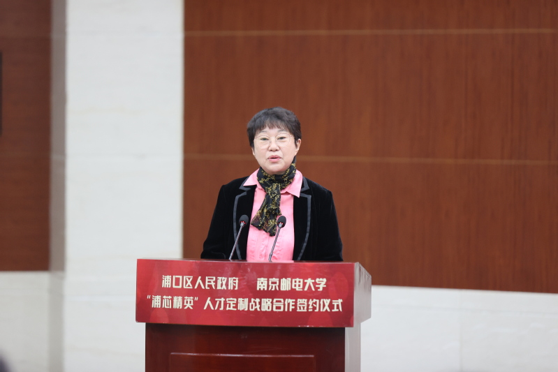 叶美兰校长在致辞中感谢省教育厅、工信厅、浦口区以及行业企业长期以来对南京邮电大学事业发展的关心和支持。她说,南京邮电大学是国家“双一流”建设高校和江苏高水平大学建设高校,2021年,学校入选全国首批“集成电路科学与工程”一级学科博士学位授权点高校,成立集成电路科学与工程学院,深化教育教学改革,实施大院名企联培计划,深入推进政产学研全方位合作,促进教育链、人才链与产业链、创新链有机衔接,为从根本上解决制约我国集成电路产业发展的“卡脖子”问题提供智力支持和人才支撑。本次南邮携手浦口区开展“浦芯精英”人才定制战略合作,将在集聚创新资源、培养创新人才、共建创新平台等方面开展全面合作,努力为建设好现代化新浦口和“强富美高”新江苏贡献南邮力量。