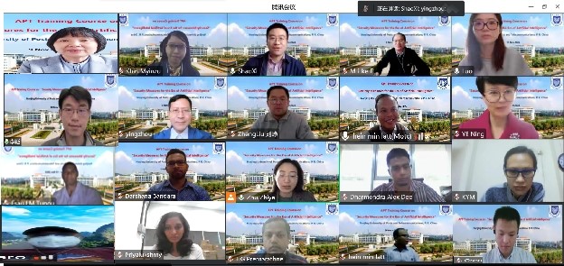 受全球新冠肺炎疫情持续影响,此次培训采用线上会议方式进行。鉴于我校历年来高水平组织和高质量教学,此次APT总部选送的培训学员人数为历年之最。授课教师根据线上教学特点,总结培训经验,调整教学方法、优化教学手段,向学员们系统介绍了计算机通信与网络、信息安全原理、物联网与大数据等方面的知识。课堂上,授课教师结合国际疫情蔓延以来通信与信息技术在全球治理中发挥的重要作用,引入大量新颖案例,通过线上平台演示、数据分析、安全治理等相关的应用软件,使学员们对人工智能时代下的网络安全理论与热点有了更加深刻和全面的认识。学员们联系自身工作实际,在授课教师指导下进行交流与讨论,课堂气氛热烈活跃。