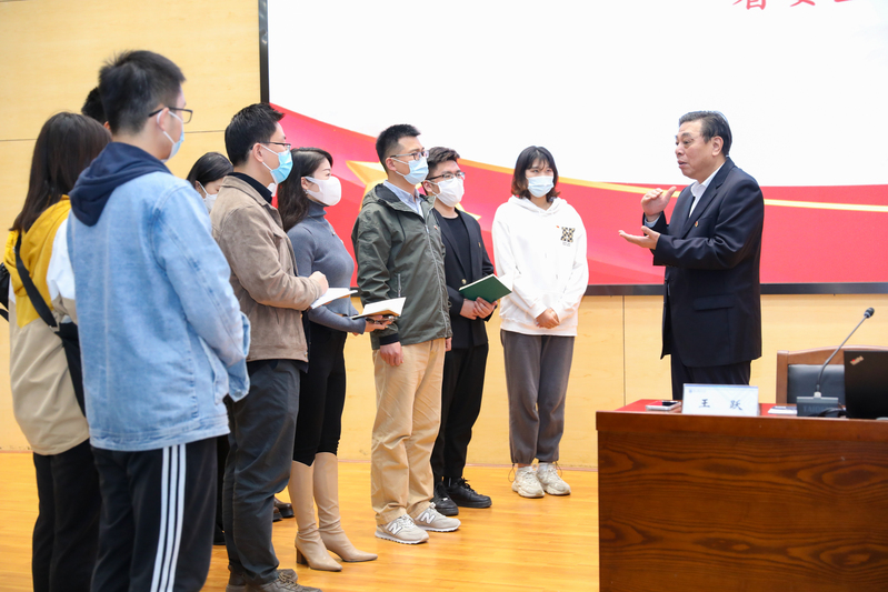 我校思政课教师、辅导员、学生代表就“思政课教师如何在偏理工科类的大学生群体中有效开展‘三进’工作”“高校思政工作者如何才能更好地把马克思主义思想精髓、中华优秀传统文化精华,同青年大学生们的共同价值观念融通起来”“青年学子如何更好地将实现个人价值目标与时代奋进目标结合起来”等话题提问,王跃教授一一答疑解惑,并结合教学工作经验与学习、宣讲党的二十大精神的心得体会和大家进行了交流分享。他表示,作为思政教师要对理论本身与学生情况有全面地把握,紧扣先进文化、传统文化、革命文化,发挥教学特长,让党的二十大精神进教材、进课堂、进学生头脑。他勉励同学们把握当下、埋头苦干、担当作为,做有理想、敢担当、能吃苦、肯奋斗的新时代好青年。