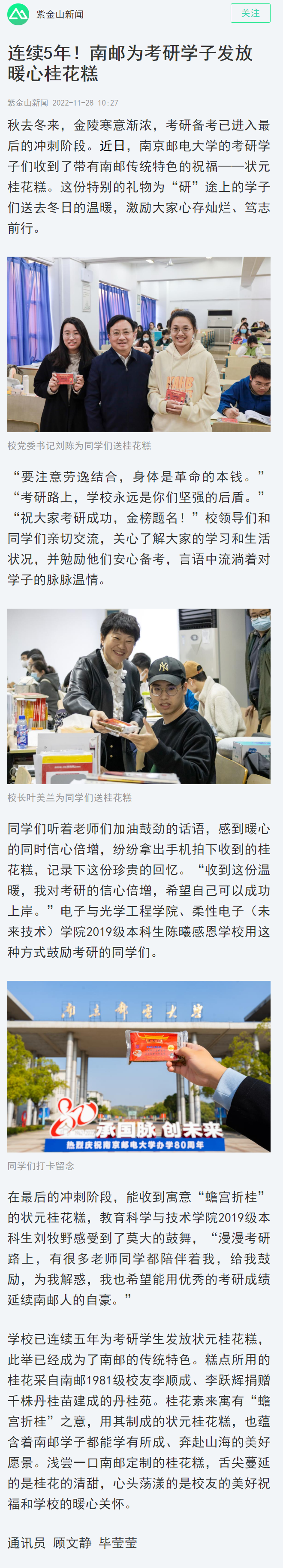 【南京日报客户端】连续5年!南邮为考研学子发放暖心桂花糕