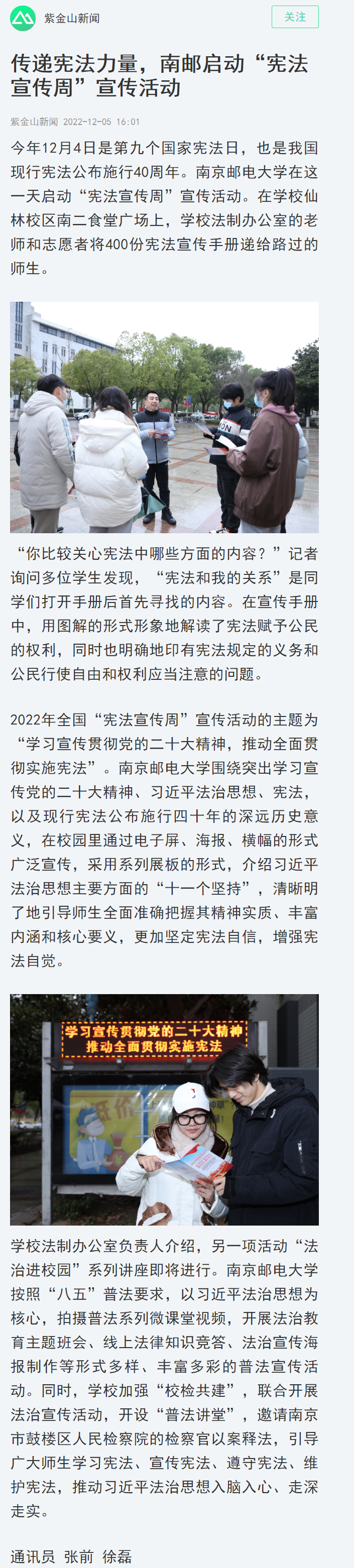 【南京日报客户端】传递宪法力量,南邮启动“宪法宣传周”宣传活动