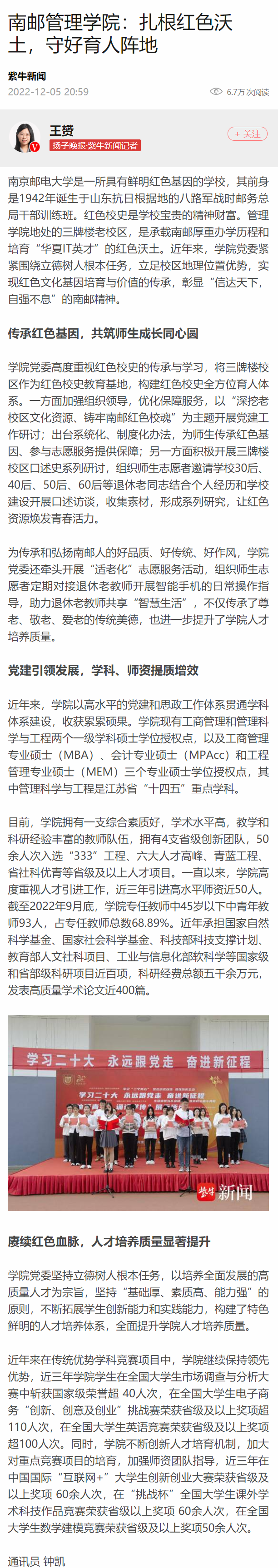【扬子晚报客户端】南邮管理学院:扎根红色沃土,守好育人阵地
