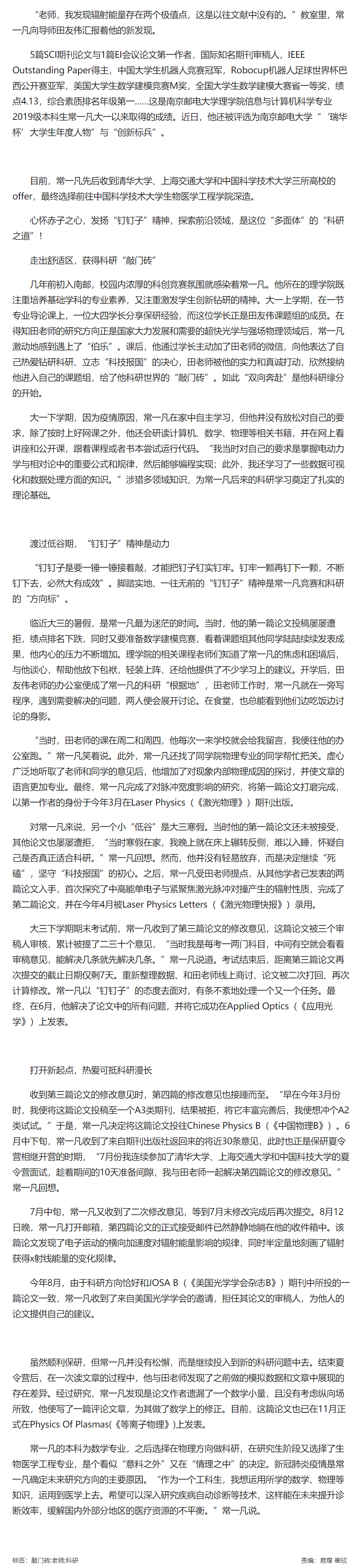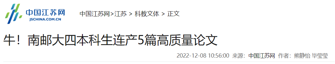 【中国江苏网】牛!南邮大四本科生连产5篇高质量论文