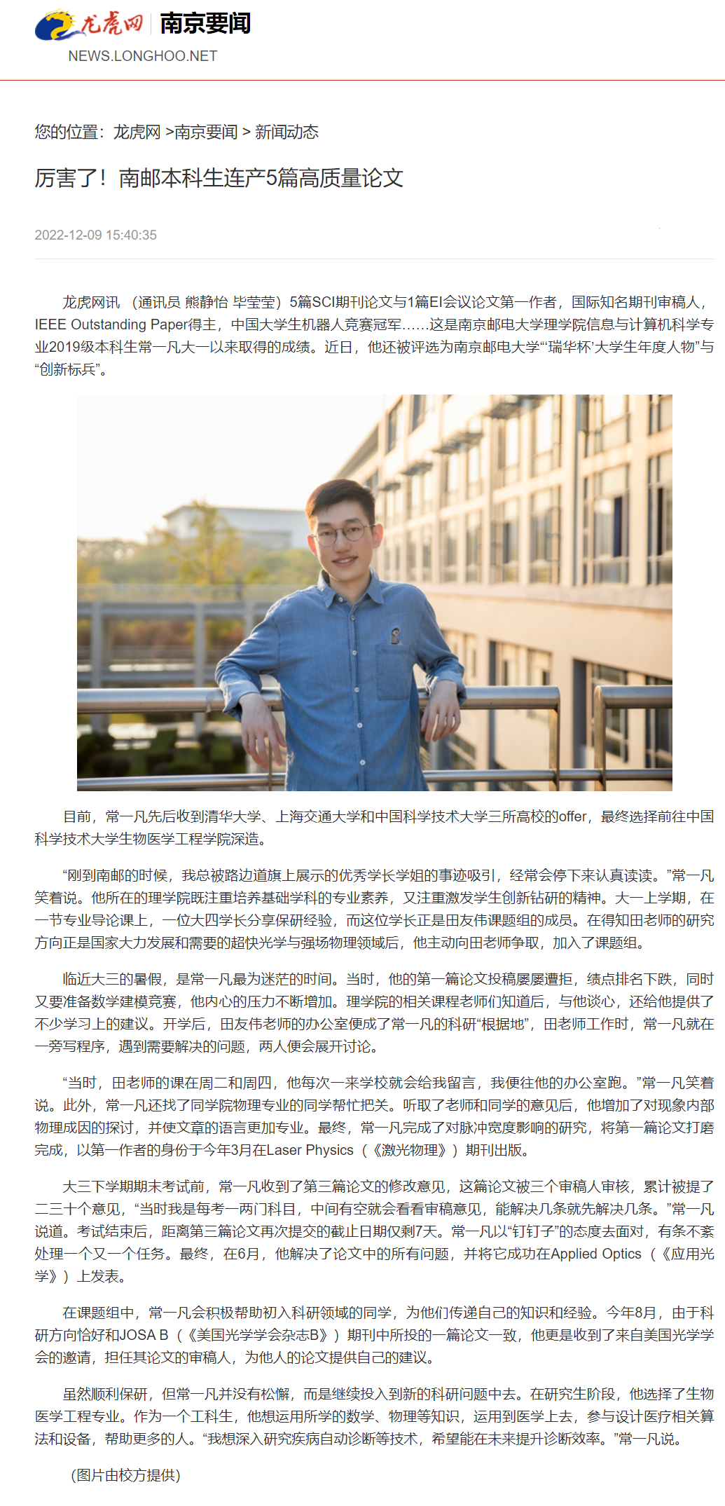 【龙虎网】厉害了!南邮本科生连产5篇高质量论文