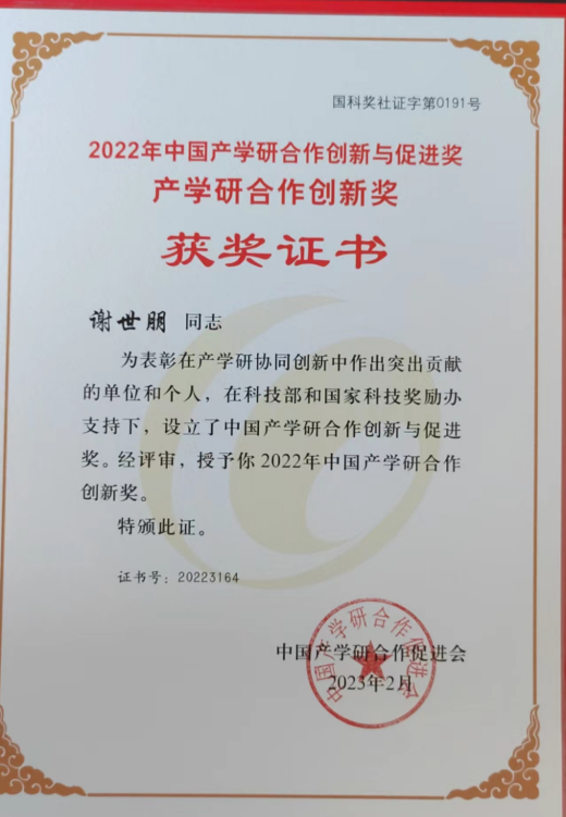 我校谢世朋教授获中国产学研合作创新奖
