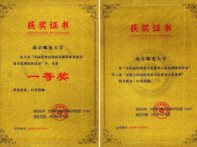 4月14日,2022-2023年全国高校质量保障机构联盟年会暨高等教育高质量发展与高校质量保障能力建设专题研讨会在厦门召开。会议表彰了高校在质量保障体系建设与质量文化建设方面成绩突出的典型示范案例。我校质量保障案例《“学为中心 基于文化 六措并举”高校教学质量保障体系研究与实践》从众多高校中脱颖而出,在全国“不同类型高校质量保障体系建设优秀范例选树活动”中荣获一等奖;质量文化建设案例《南邮“学为中心,一体两翼”质量文化建设》在“全国高校质量文化建设示范案例选树活动”中入选“首批全国高校质量文化建设示范案例”。