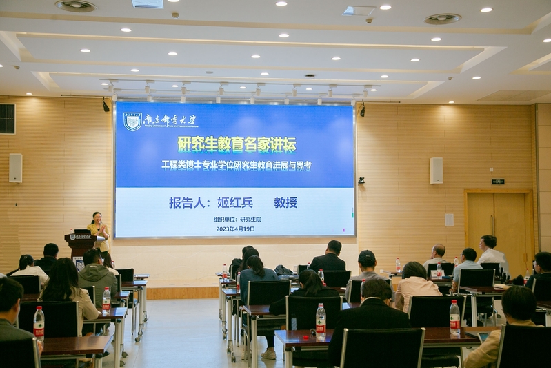 4月19日下午,南京邮电大学81周年校庆月学术活动之一、我校研究生教育名家讲坛在仙林校区中兴报告厅举行。全国工程专业学位研究生教育指导委员会委员、西安电子科技大学模式识别与智能系统学科博士生导师姬红兵教授受邀作专题报告。校党委常委、副校长蒋国平出席活动并致辞,研究生院、研究生工作部、一流学科和高水平大学建设办公室等部门负责人及工作人员,各学院分管学科和研究生教育的负责人、研究生导师代表和研究生秘书参加报告会。
