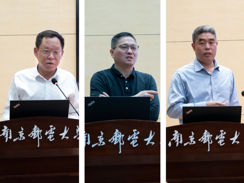 授聘仪式前,举行了南京邮电大学第二届江苏省产业教授讲坛。论坛主题为“数智时代的产业变革”。江苏有线数据网络有限责任公司宋晶科总经理的报告题为“守正创新,通信行业现状与广电网络转型发展之路”,结合实际介绍了中国通信发展现状,对行业巨头发展进行比较,强调经济新常态迫切需要实施创新驱动发展战略,希望同学们守正创新,为我国通信行业发展贡献力量。中孚信息股份有限公司罗圣美副总经理以“安全发展新领域:数据安全和电磁空间安全”为题,阐述了数字化时代数据安全和电磁空间安全领域面临的风险。他是2011年的江苏省首届产业教授,与南邮有十余年的产教融合合作经历,他认为受聘产业教授“既是荣誉,更是责任”。南京中兴新软件有限责任公司中兴通讯研究院屠要峰副院长在“数转智用:数字经济关键技术现状与发展”报告中,以“时代、技术、信创”为关键词,展开分析了信息技术的发展,提出“信创行业正在成为下一个巨头成长之地”,认为行业发展面临着核心技术不足、大而不强等问题,希望研究生们增强自身实力,为信创产业的创新升级和长远发展献计献力。