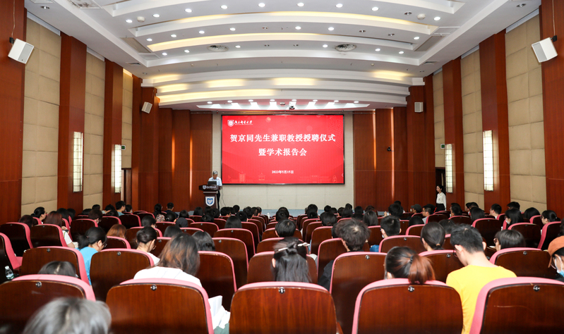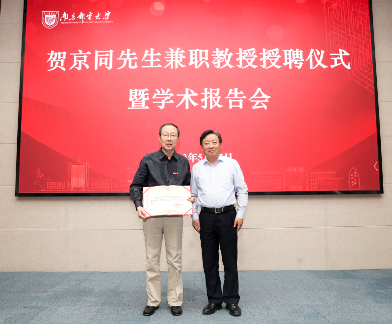 5月15日上午,我校1978级校友、南开大学英才教授、经济学院博士生导师、南开大学滨海开发研究院副院长、南开大学专利和知识产权管理办公室主任贺京同兼职教授授聘仪式暨学术报告会在仙林校区中天科技报告厅举行。我校1978级校友、深圳市宏电技术股份有限公司董事长左绍舟,校党委书记刘陈出席授聘仪式。校党委常委、副校长郭宇锋主持授聘仪式。
