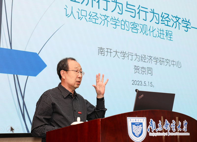 授聘仪式后,贺京同校友作了“经济行为与行为经济学——认识经济学的客观化进程”的主题报告。