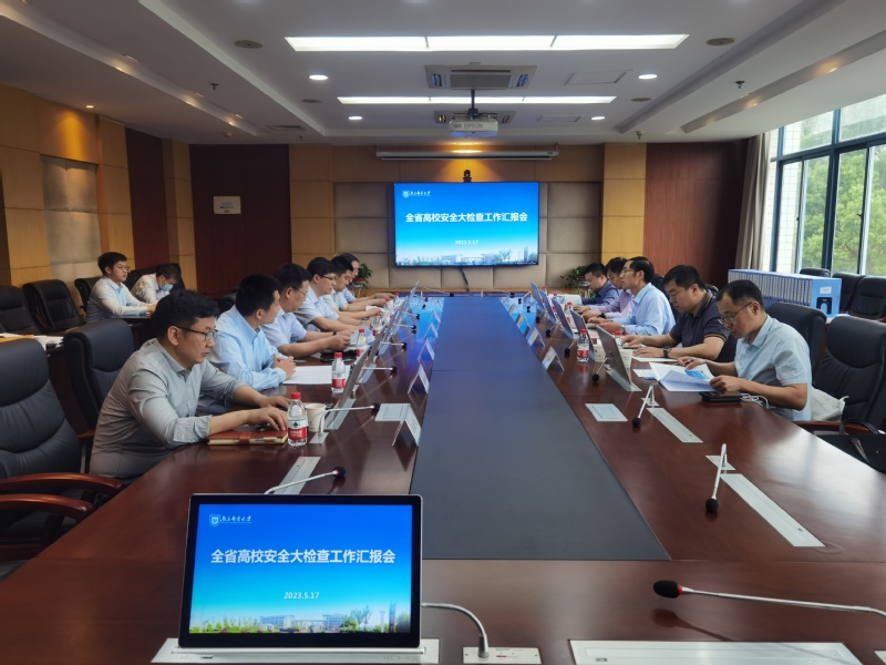 李江涛组长介绍了此次全省高校安全大检查的目的、程序和重点内容。保卫处处长殷云林以“提升常态化整治成效 争创高质量平安校园”为主题,从优化安防建设体系、推进重点领域整治、创新教育管理举措等方面向检查组作了详细汇报,重点介绍了我校常态化安全检查工作开展情况。