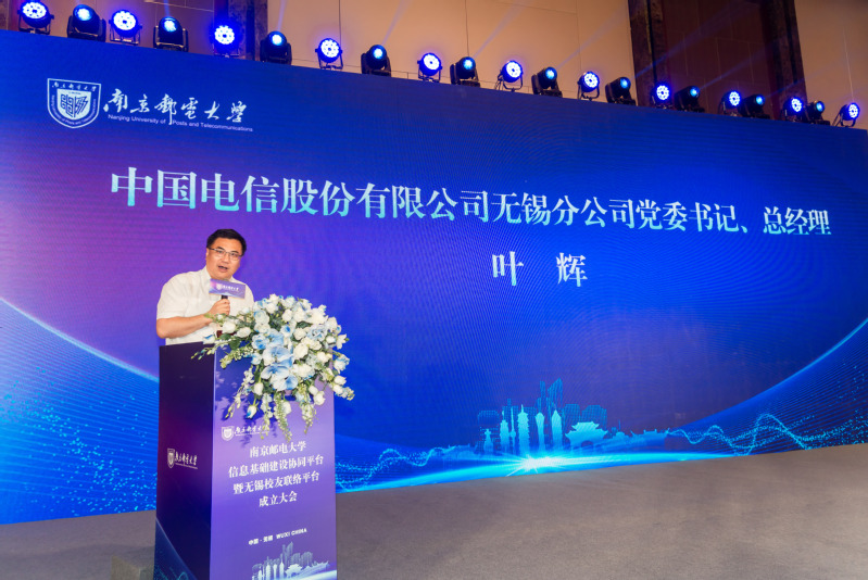叶辉总经理代表中国电信无锡分公司祝贺南京邮电大学信息基础建设协同平台暨无锡校友联络平台成立。他表示,南邮是国家信息通信领域人才培养的摇篮,为电信行业输送了大批人才,毕业生有着良好的口碑和社会声誉,希望校企双方未来能够在关键技术革新、科研成果转化、创新人才培养等方面通力合作,共同为地区经济社会发展和国家通信事业作出更大贡献。