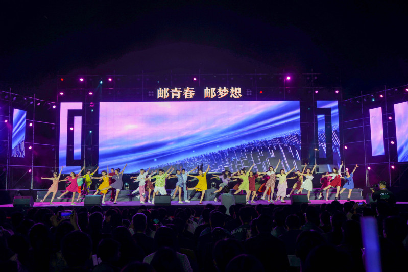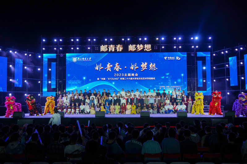 5月22日晚,2023“邮青春·邮梦想”主题晚会暨“天翼·飞YOUNG”杯第二十六届大学生文化艺术节闭幕式在我校仙林校区南操场举行。中国电信江苏公司总经理助理、02级校友肖江浩,中国电信南京分公司党委委员、副总经理、94级校友杨春泽,中国电信南京分公司校园营销服务中心副总经理张燕,我校校友企业家联盟秘书长、97级校友徐剑,校党委常委、纪委书记、省监委派驻南京邮电大学监察专员李子全,校党委常委、副校长郭宇锋,校党委常委、副校长王友国以及企业嘉宾、学校相关职能部门、各学院负责人,学院分团委书记、辅导员、教师代表与全校3000余名同学一同观看了演出。