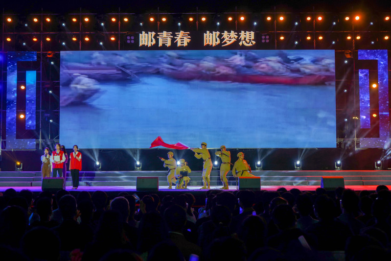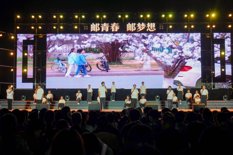 “青春逐梦”——邮梦起航。开场节目《龙腾虎跃》带动了会场欢腾热烈的氛围;民族管弦乐《花好月圆》描绘出一幅人们欢聚一堂载歌载舞的美妙画卷,表达对师生诚挚的祝福;合唱《信仰如旗》歌颂了先辈们筚路蓝缕、开拓创新的历程,号召同学们向着信仰,奔赴热爱;舞蹈《遇见未来》是青年人追逐热血澎湃的青春梦想,去向无尽远方的宣示;“传薪火 展芳华”话剧比赛中荣获特等奖的管理学院作品《重返二十岁》带来一场时空交错的碰撞,演绎了南邮人理想之火不灭、赤子之心不失、奋斗之志不移的家国情怀。