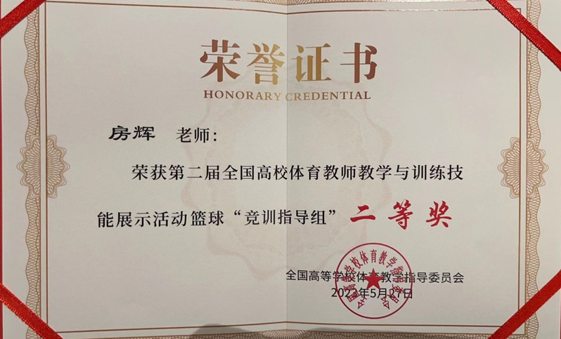 5月27日,由全国高等学校体育教学指导委员会主办的“第二届全国高校体育教师教学与训练技能展示活动”在浙江落下帷幕,我校体育部房辉老师荣获“竞训指导组二等奖”。