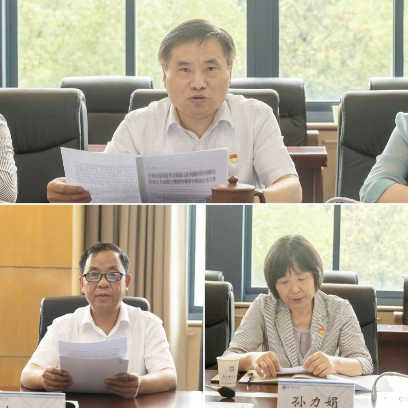 校党委理论学习中心组成员,组织部,人事处,工会,发展规划处,教务处,科学技术处,一流学科和高水平大学建设办公室,电子与光学工程学院、柔性电子(未来技术)学院,外国语学院等相关部门负责人,分别围绕一体推进学科建设、人才培养、师资引育、科技创新、党建引领5个学校层面讨论主题,以《坚持“走大信息特色发展之路”的学科发展战略,加快建设中国特色、世界一流的大学和优势学科》《深化人才培养模式改革,全面提升人才自主培养质量》《坚持人才强校战略,培养造就德才兼备的高素质人才》《坚持“四个面向”,强化有组织科研,加快推进高水平科技自立自强》《加强党的建设,以高质量党建引领高质量发展》为题开展了深入交流讨论。大家纷纷表示,要将全面学习把握习近平新时代中国特色社会主义思想与贯彻落实习近平总书记对江苏工作和关于教育的重要讲话和指示批示精神有机融合、一体贯通;要牢记嘱托、感恩奋进,以党的创新理论为指导,结合实际,深入查找分析学校在贯彻新发展理念、构建新发展格局、推动高质量发展中的问题短板及其根源,找准切入点、发力点,统一思想认识,提出思路举措,为学校新阶段实现高质量发展谋定方向、擘画蓝图,为“美丽中国”和“强富美高”新江苏现代化建设贡献新力量。