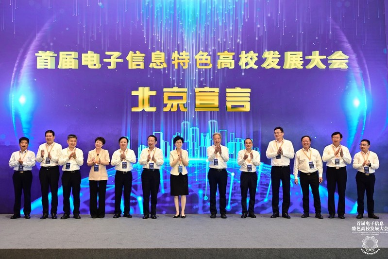 会上,八所高校聚焦教育强国建设,共同发布了“首届电子信息特色高校发展大会北京宣言”。