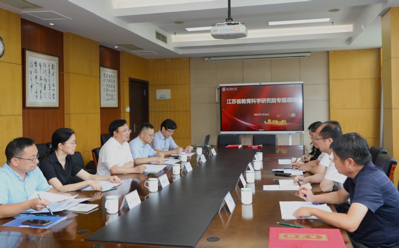 7月26日,江苏省教育科学研究院院长、党委书记陆岳新,党委副书记马万全,纪委书记、党委委员常青,高等教育研究所研究员刘自团一行来校调研交流,我校党委书记刘陈出席交流座谈会。发展规划处(高等教育研究所)、社会科学处、经济学院负责人及相关人员参加座谈会。