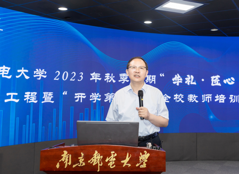 9月1日,我校在仙林校区融创教学空间举行2023年秋季学期“华礼·匠心”教师培训工程暨“开学第一课”全校教师培训会。培训会主题为“落实立德树人根本任务,聚焦前沿教学发展理念,加强一流课程建设,提升教师教学能力”。江苏省教育厅高等教育处二级调研员郭新宇、江苏省高校在线开放课程中心副主任程乃胜教授应邀作专题报告。全校各教学单位共计千余名教师以线上线下相结合的方式参加会议,校党委常委、副校长刘青山出席培训会并讲话。