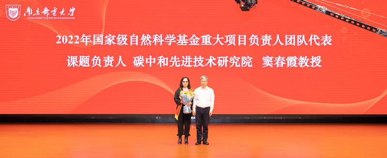 校党委书记郭宇锋为2022年国家自然科学基金重大项目负责人团队代表窦春霞教授颁发绶带