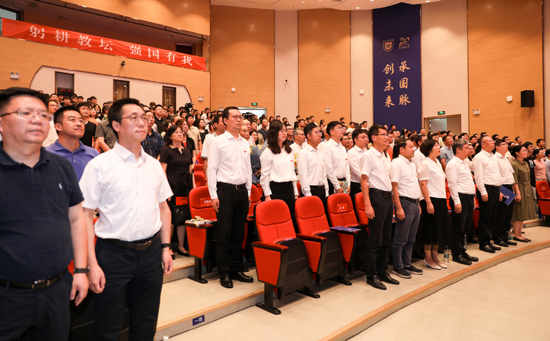 教师代表、博士生导师鲍秉坤教授讲述了作为一名高校教师的使命与担当。她寄语青年教师一要涵养高尚师德,提升育人水平,培养堪当大任的时代新人,把“学为人师、行为世范”作为毕生追求,做到以德立身、以德立学、以德施教,努力成为立德树人的“大先生”;二要服务国家战略,潜心治学,在扎根中国大地中做出一流学问,追求卓越,努力把南邮建成更多创新成果的策源地。她表示,广大教师要以对教育事业的高度忠诚和满腔热忱,不负重托,奋发向上,激流勇进,共同推动学校教育教学工作迈上新台阶,开启新的征程。