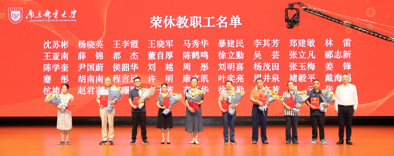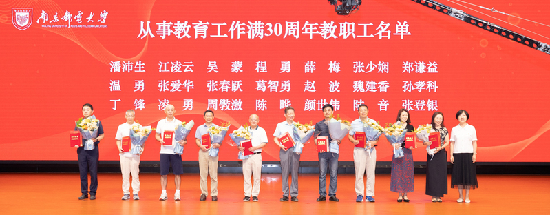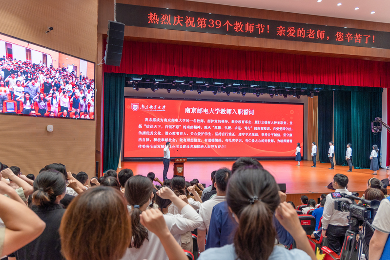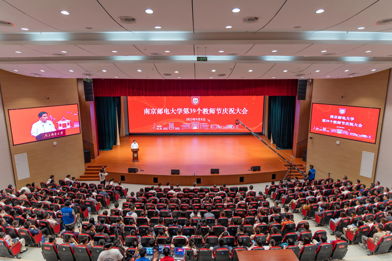 金秋九月,硕果盈枝。9月8日上午,我校在仙林校区安恒青春剧场召开大会隆重庆祝第39个教师节。校党委书记郭宇锋,校党委副书记蒋国平,校党委常委、副校长姜小舜,校党委常委、纪委书记、省监委派驻南京邮电大学监察专员龚亲华,校党委常委、副校长肖甫,校党委常委、副校长刘青山,校党委常委、副校长谢平,副校长赵强,各职能部门、各学院代表,荣休教职工、从教满30周年教职工、新入职教职工、教师代表、学生代表等出席会议。大会通过视频直播,各单位、各学院设置分会场,以观看直播的方式线上参会。大会由校党委副书记蒋国平主持。
