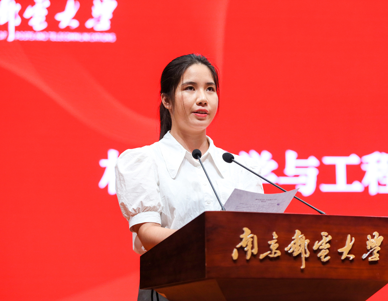 学生代表、材料科学与工程学院2020级本科生刘显慧同学深情感恩老师们的陪伴和付出。她希望通过加入优秀学子宣讲团、分享梦想公开课等方式的传递,提供力所能及的帮助,为打造大爱南邮贡献一份力量。她说,作为新时代青年,在最好的年纪遇上最好的时代和机遇,要以实现中华民族伟大复兴为己任,不辜负老师对我们的教导,不辜负党和人民的殷切希望,在中华民族复兴征程中作出新贡献。