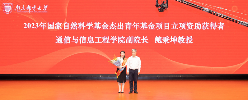 会上,校党委副书记蒋国平宣读《南京邮电大学2022-2023学年表彰决定》,校党委书记郭宇锋分别为2022年国家级教学成果奖二等奖获奖人员代表蒋国平教授,2022年国家自然科学基金重大项目负责人团队代表窦春霞教授,2023年国家自然科学基金杰出青年基金项目立项资助获得者鲍秉坤教授,2023年国家自然科学基金优秀青年基金项目立项资助获得者代表陶冶老师、马云老师、王婷老师颁发绶带。
