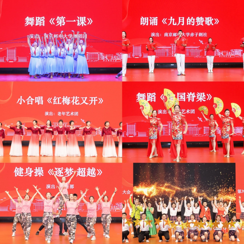 会上,校老年艺术团、舞蹈团、赤子剧社、体育部、材料科学与工程学院师生为老师们献上了具有南邮红色底蕴的歌舞、朗诵、合唱、健身操等表演。