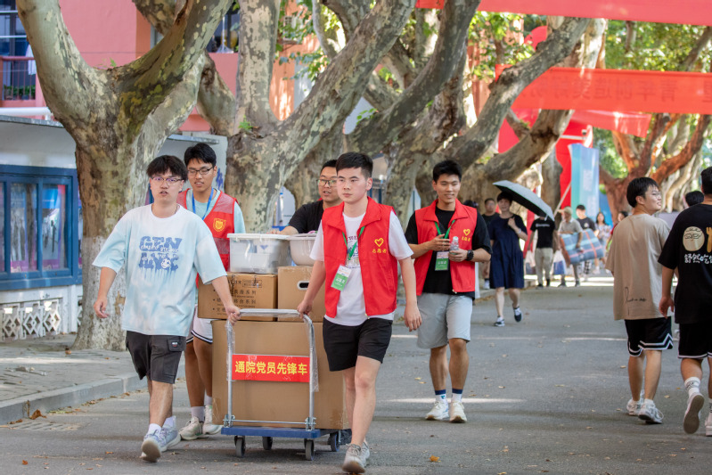 学校预先采集统计外地来宁新生的到站信息,在南京火车站和南京铁路南站设立接站点,开通车站直达学校的接驳线,并安排师生志愿者在车站迎接新生。仙林校区、三牌楼校区、锁金村校区以及浦口办学点分别设立新生接待点,全力保障新生安全到校、顺利报到。报到当天学校相关职能部门通力合作,水电应急维修、现场医疗保障、周边道路交通疏导等小组24小时待命,随时提供温馨服务。
