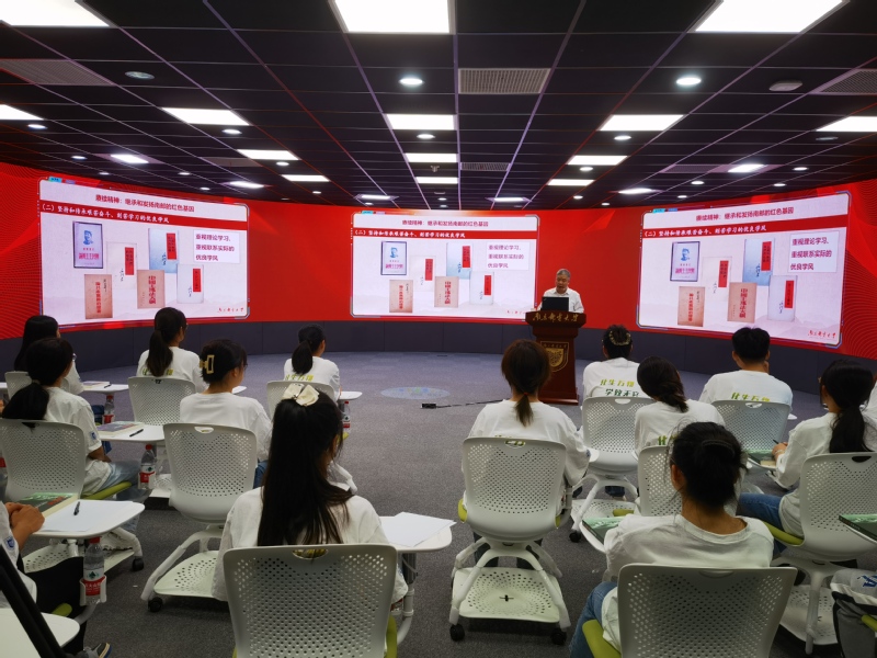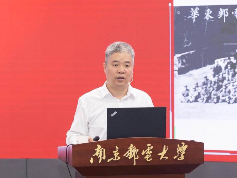 郭书记围绕南邮红色校史,以《战火生根热血铸魂》为题,讲述了“学史铸魂:学习南邮校史的重要意义”“南邮发源:抗日战争时期的战邮干训班”“数易校名:在解放战争中辗转壮大”“定址南京:结束8年的战争岁月办学历史”“赓续精神:继承和发扬南邮的红色基因”等五个部分的内容,上了一堂生动的思政第一课。