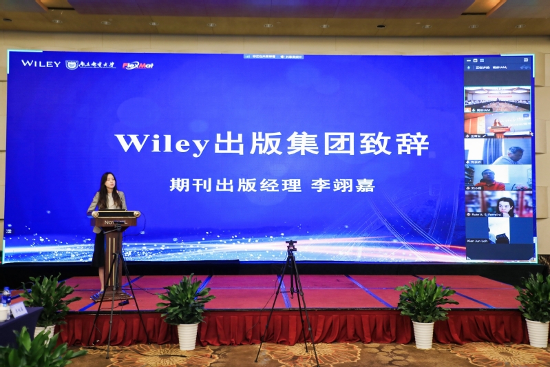 Wiley出版集团李翊嘉期刊出版经理在致辞中表示,Wiley出版集团与南京邮电大学有机电子与信息显示国家重点实验室共同创办的FlexMat国际期刊是一颗冉冉升起的新星。她从国际刊号ISSN、官网建设、投稿系统等方面介绍创办进程,并欢迎各位专家学者投稿。她表示,将为把FlexMat办成具有国际影响力的高水平期刊努力。