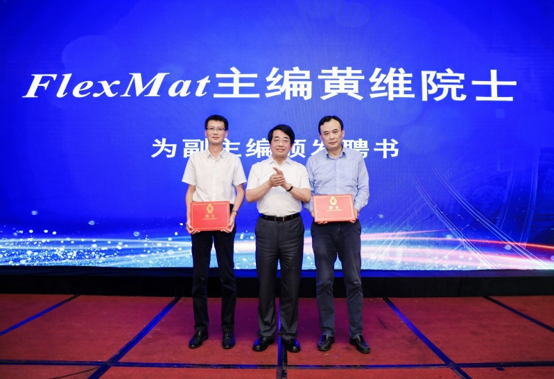 启动仪式结束后,叶美兰校长为FlexMat主编黄维院士颁发聘书。FlexMat主编、黄维院士为期刊共同主编、执行主编、副主编颁发聘书。