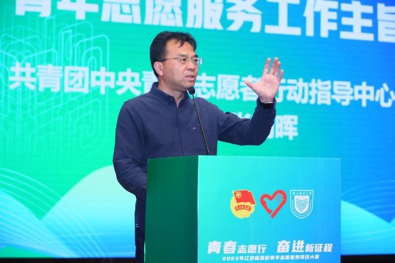 当晚,2023年江苏省高校青年志愿服务项目大赛闭幕分享会在安恒青春剧场举行。团中央青年志愿者行动指导中心党委书记张朝晖,分享了五组有关志愿事业的关键词。他以“60年”阐释中国青年志愿者精神,以“30年”阐释中国青年志愿者行动,以“20年”阐释大学生志愿服务西部计划,以“10年”阐释新时代的中国志愿者事业。他勉励江苏广大青年志愿者弘扬“奉献、友爱、互助、进步”的志愿精神,围绕祖国所需、社会所盼、群众所急,深入基层一线,深入艰苦地区,深入群众身边,通过参与志愿服务项目接受实践锻炼,在经风雨、见世面中壮筋骨、长才干,“凭借当仁不让的勇气,缩短梦与彼岸的距离”。