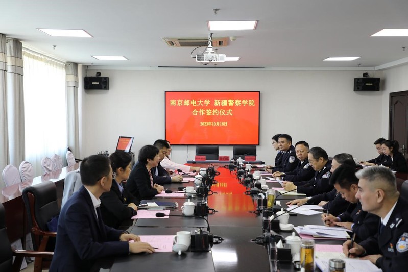 在与新疆警察学院的合作签约仪式上,新疆维吾尔自治区公安厅党委委员、新疆警察学院党委书记张建仁表示,合作框架协议的签署开启了两校合作的新征程,双方开展教师互访讲学、学生互换交流、科研项目协同创新以及师资深造,是贯彻总体国家安全观,响应党中央援疆号召,共同维护国家安全的务实之举、长远之举。叶美兰校长表示,新疆警察学院长期以来为新疆社会稳定和长治久安作出了突出贡献,希望两校共同推动大数据、网络空间安全等学科专业发展,培养高水平师资和扎根边疆的应用型网络安全人才,为推动新疆教育事业高质量发展和维护国家安全贡献力量。新疆警察学院党委委员、副院长巢锡辉,新疆校友会副秘书长胡汉林参加座谈会。