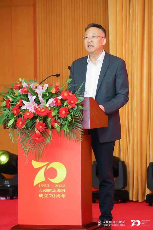 龚亲华书记在致辞中回顾了人民邮电出版社与南京邮电大学多年来深入全面的合作历程,感谢出版社对南邮人才培养、科学研究和社会服务等工作长期以来的支持。他强调,学校将以深入学习贯彻党的二十大精神为抓手,深入推进习近平总书记关于教育的系列重要论述,与出版社进一步深化合作,依托双方的行业特色和学科优势,共同进行教材选题开发、数字化教材研发、教育教学改革研究等工作,为实现科技自立自强、创新人才自主培养贡献力量。