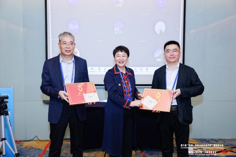FlexMat国际期刊创刊主编黄维院士,FlexMat期刊共同主编新加坡材料研究院院长罗贤俊教授和南京邮电大学汪联辉教授,期刊执行主编南京邮电大学赖文勇教授,期刊副主编加州大学洛杉矶分校陈俊教授、南京邮电大学范曲立教授,林雪平大学高峰教授,新加坡国家科学院院士、新加坡国立大学刘小钢教授,加州大学洛杉矶分校裴启兵教授,阿威罗大学Rute A. S. Ferreira教授,西北工业大学于海东教授,香港城市大学张华教授和南京邮电大学赵强教授;编委会成员、南洋理工大学陈鹏教授,新加坡工程院、新加坡国家科学院院士、南洋理工大学陈晓东教授,华南理工大学黄飞教授,电子科技大学林媛教授,北京大学孟鸿教授,南洋理工大学浦侃裔教授,南京大学王欣然教授,香港理工大学黄维扬教授,南洋理工大学邢本刚教授,山东大学于伟泳教授,香港城市大学张其春教授和香港理工大学郑子剑教授等线上线下参会。