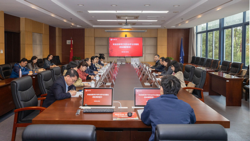 11月9日,省教育厅对外合作与交流处处长施蕴玉一行来我校调研国际化相关工作。校党委常委、副校长刘青山出席调研座谈会。国际合作交流处、海外教育学院、波特兰学院负责人参会。
