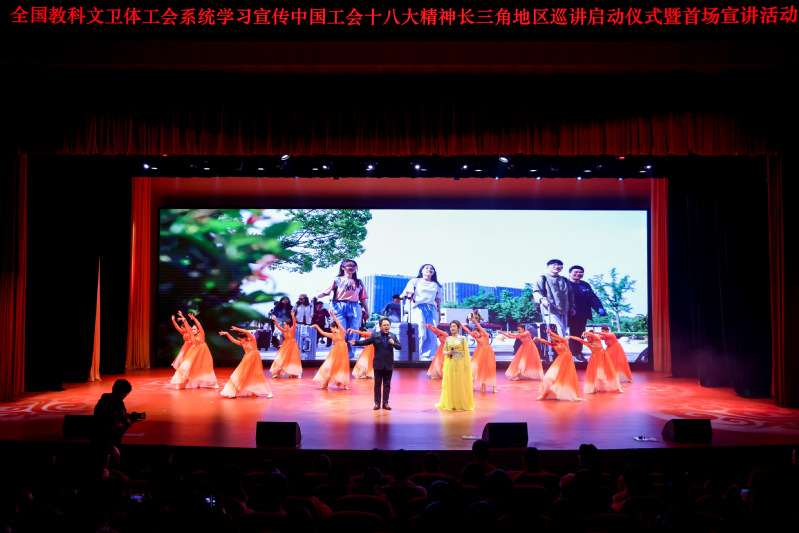 11月11日下午,全国教科文卫体工会系统学习宣传中国工会十八大精神长三角地区巡讲活动启动仪式暨首场宣讲在我校安恒青春剧场举办。我校党委书记郭宇锋,党委常委、副校长周亮出席启动仪式。