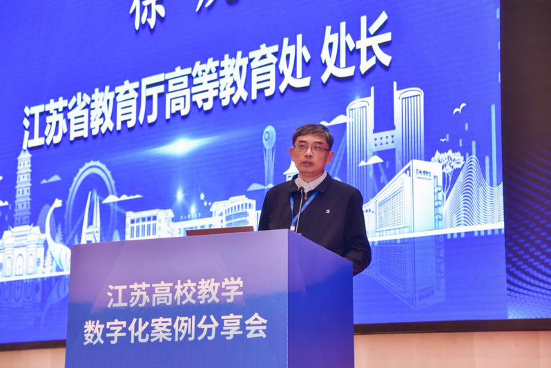 会上,南京邮电大学、南京医科大学、江南大学、中国矿业大学、苏州大学等5所高校进行案例分享,教育部教育技术学教学指导委员会副主任委员、江苏省教学名师、江南大学陈明选教授作题为《高校教育数字化转型的内涵特征与实践路径》的主旨报告。