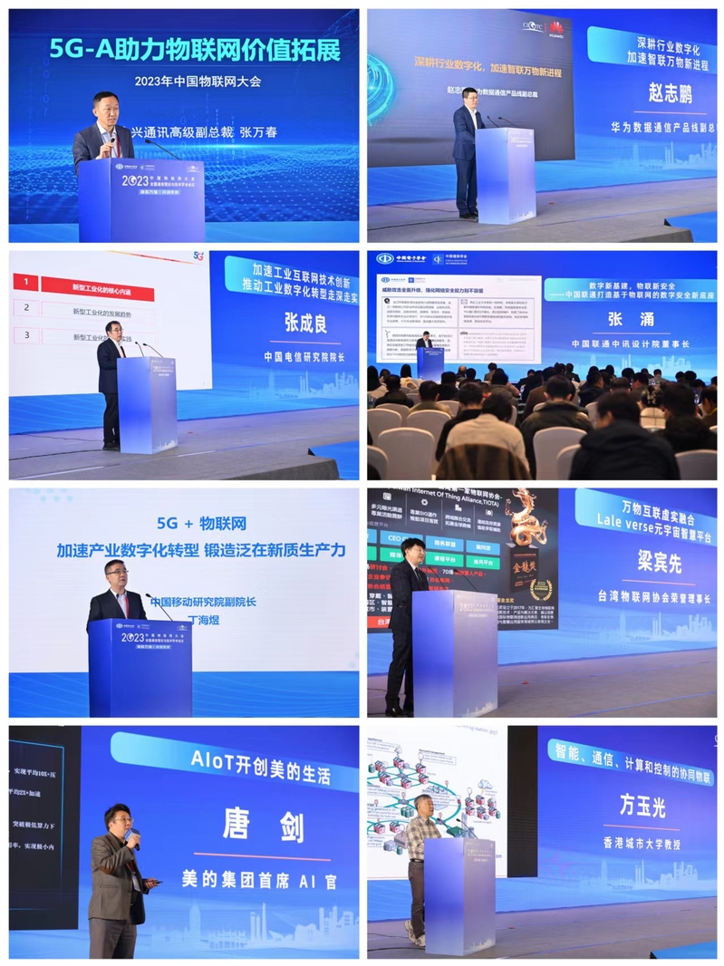 大会组委会共主席、哈尔滨工业大学(深圳)副校长张钦宇,北京邮电大学副校长王文博、重庆邮电大学副校长林金朝分别主持专家特邀报告会。中兴通讯高级副总裁张万春,华为数据通信产品线副总裁赵志鹏,中国电信研究院院长张成良,中国联通中讯设计院董事长张涌,中国移动研究院副院长丁海煜,台湾物联网协会荣誉理事长梁宾先,美的集团首席AI官唐剑,香港城市大学教授方玉光,挪威奥斯陆大学教授、欧洲科学院院士张彦,之江实验室智能芯片与器件研究中心主任马建国,北京邮电大学教授廖建新,北京交通大学电子信息工程学院院长艾渤教授,复旦大学教授高跃分别作题为《工业物联网的通信技术》《筑牢主动免疫安全可信物联网保障体系》《厚植关键根部技术,打造柔性电子强国》《算力网络研究与探索》《5G-A 助力物联网价值拓展》《智联万物,夯实智能世界的联接基石》《加速工业互联网技术创新,推动工业数字化转型走深走实》《数字新基建,物联新安全——中国联通打造基于物联网的数字安全新底座》《5G+ 物联网: 加速产业数字化转型锻造泛在新质生产力》《万物互联虚实融合 Lale verse 元宇宙智慧平台》《AIoT 开创美的生活》《智能、通信、计算和控制的协同物联》《泛在算力网络》《面向智能制造的集成电路发展》《移动通信智能业务网络支撑数联万物》《低真空管超高速飞行列车车地无线通信关键技术》《天空地云原生网络架构与理论研究》的专家特邀报告。