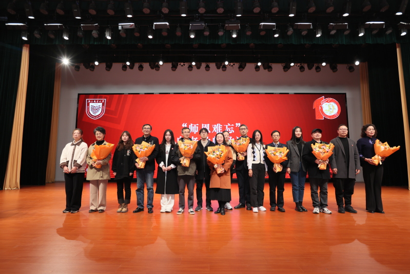校友代表、年轻教师代表、在校生代表为8位老领导、退休教师代表献上鲜花,表达了对老师的敬意和感激之情。
