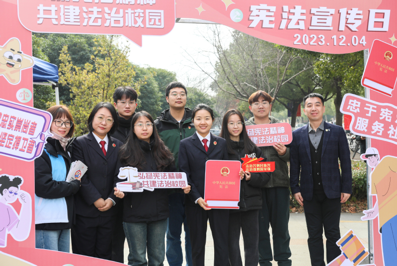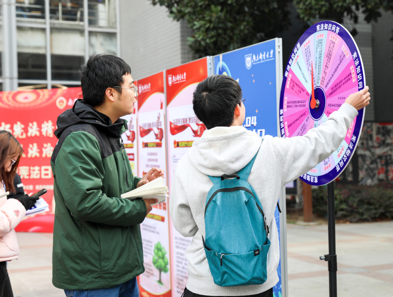 主题宣传扬精神。12月4日,由校党委宣传部、法制办公室、南京市鼓楼区人民检察院联合主办,材料科学与工程学院承办的“国家宪法日”主题活动在仙林校区南二食堂外场举行。活动现场,工作人员通过展示与讲解宪法宣传展板、发放宪法宣传手册和普法书籍、提供法律咨询等方式,以通俗易懂的语言,向过往师生普及宪法、爱国主义教育法等法律知识。活动过程中还设置了“12.4”宪法知识有奖竞答环节,吸引师生积极参与答题。本次活动共发放宪法宣传手册600余本,参加宪法知识有奖竞答近200人次,掀起师生宪法学习热潮,营造了浓厚的法治文化宣传氛围。