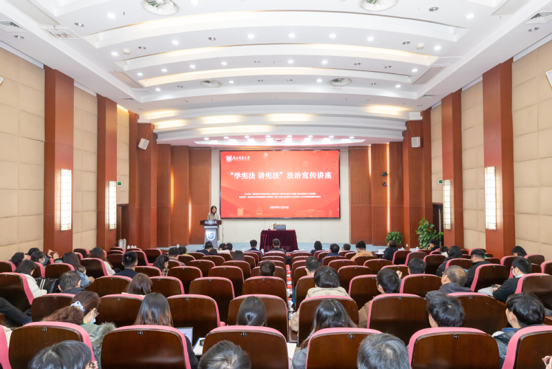普法讲座强意识。12月4日,我校在仙林校区中天科技报告厅召开“学宪法讲宪法”法治宣传讲座,南京市玄武区人民法院副院长潘溪和南京市鼓楼区人民检察院第六检察部主任王苏应邀出席并主讲。活动由校党委宣传部、统战部、教师工作部、法制办公室,南京市玄武区人民法院、南京市鼓楼区人民检察院、民革江苏省法律工作者联谊会、民革江苏省直栖霞区委员会主办,近百名教师代表参加讲座。讲座由校党委常委、党委宣传部部长张敏主持。潘溪副院长以“宪法精神与高校法治”为题,通过宪法的概念、高校法治文化建设、新时代青年守法律于行三个方面,深入浅出地将法学理论、司法实践与高校法治进行了衔接。王苏主任以“弘扬宪法精神,维护宪法权威”为题,介绍了宪法的发展历程和设立国家宪法日的意义,并结合当代大学生防电信诈骗的鲜活实际,以最高人民检察院典型案例作为指引,为我校教师今后做好学生法治教育工作提供了针对性的指导。此次普法讲座的召开,推动了教师将法治思想理论和法律实际应用联系起来,为我校教师打开更广阔的法治教育思路。
