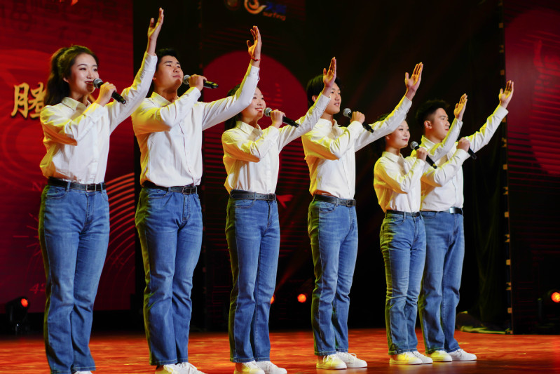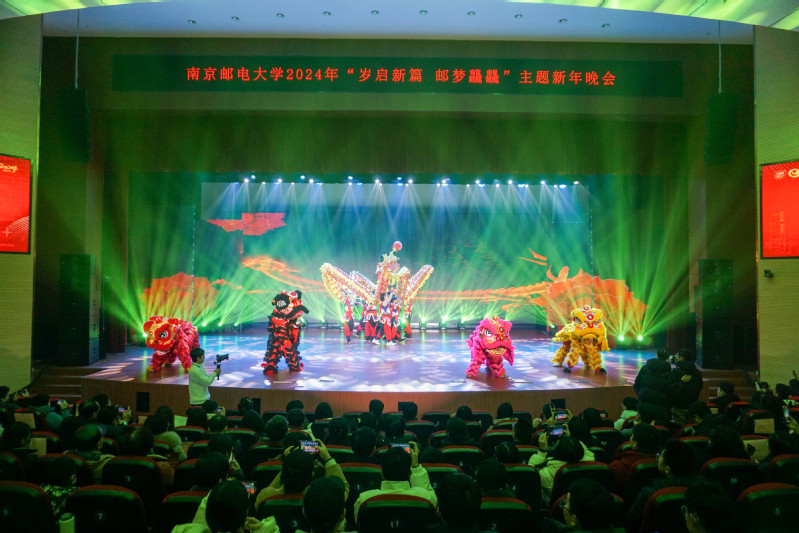 新年晚会以气势磅礴的新派龙狮秀《龙腾华夏》开场,展现了传统文化的魅力,点燃了全场观众的热情。交响《红旗颂》《太阳照常升起》展示了南邮学子心怀对革命先辈的敬意,向着光明的未来踔厉奋发,笃行不怠的豪情。朗诵《永不消失的邮递员》赞颂了使命必达的战邮精神,在激情澎湃中讲述着峥嵘沧桑但又热血沸腾的中国邮电通信发展史。舞蹈《剪纸姑娘》带领观众领略剪纸艺术的别样风采,表达了对我国的传统文化“剪纸艺术”的赞美。