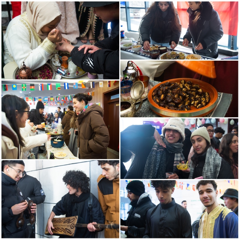安恒青春剧场内,多国文化展台围绕圆形大厅一字排开。来自俄罗斯、印度、孟加拉、加纳、印度尼西亚、阿尔及利亚、刚果(金)、刚果(布)、利比里亚等国的留学生们热情展示自己国家的美食、服饰、工艺品等物质文化。哈萨克斯坦留学生们身着传统民族服饰,摩洛哥留学生们载歌载舞,中国展位上的剪纸、油墨画、中国结等传统文化艺术吸引大家驻足欣赏。国际文化节展示了不同国家的文化魅力。多国文化的交流与碰撞,不仅增进了中外学生之间的友谊,也为世界文化的多样性注入了新的活力。